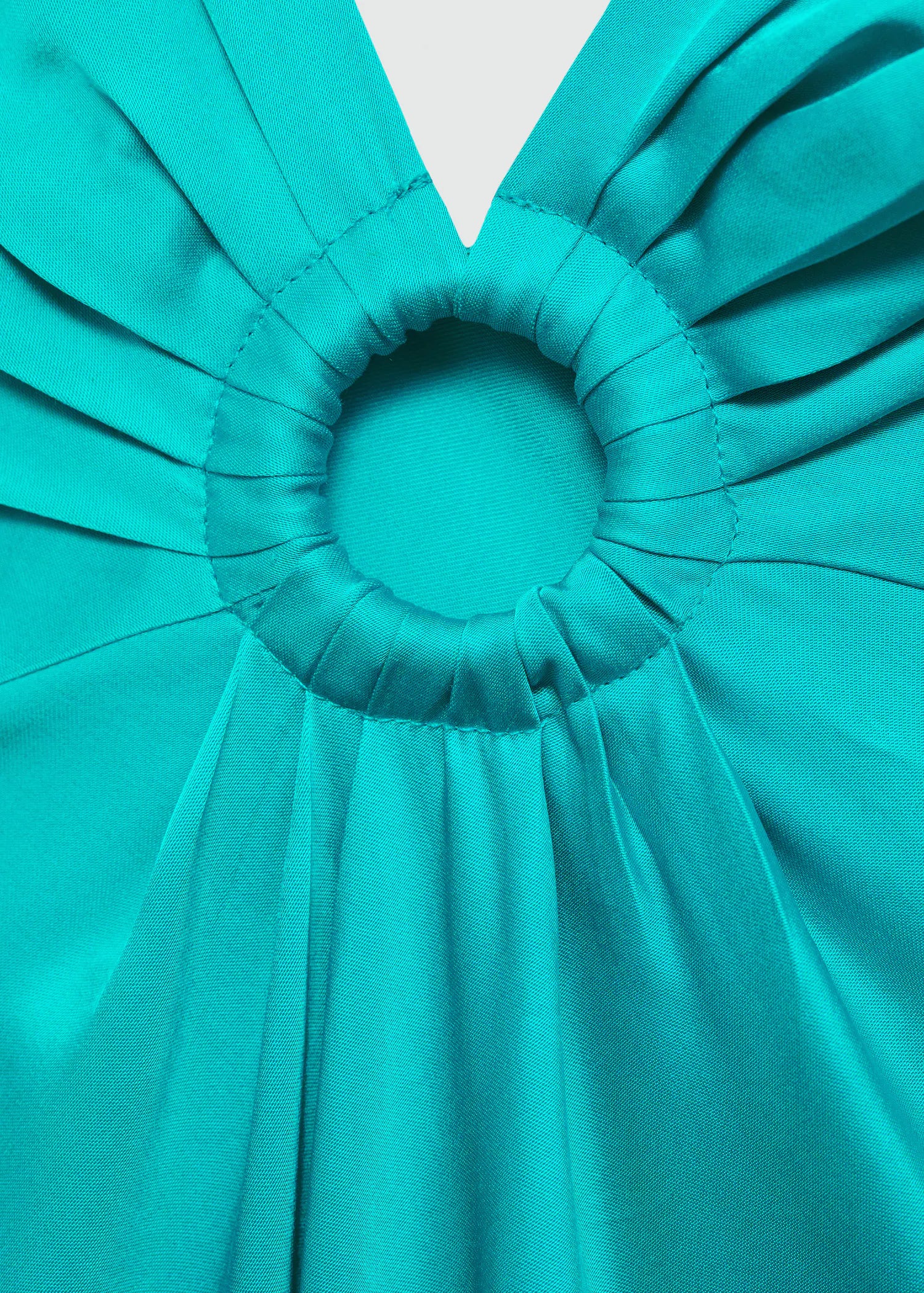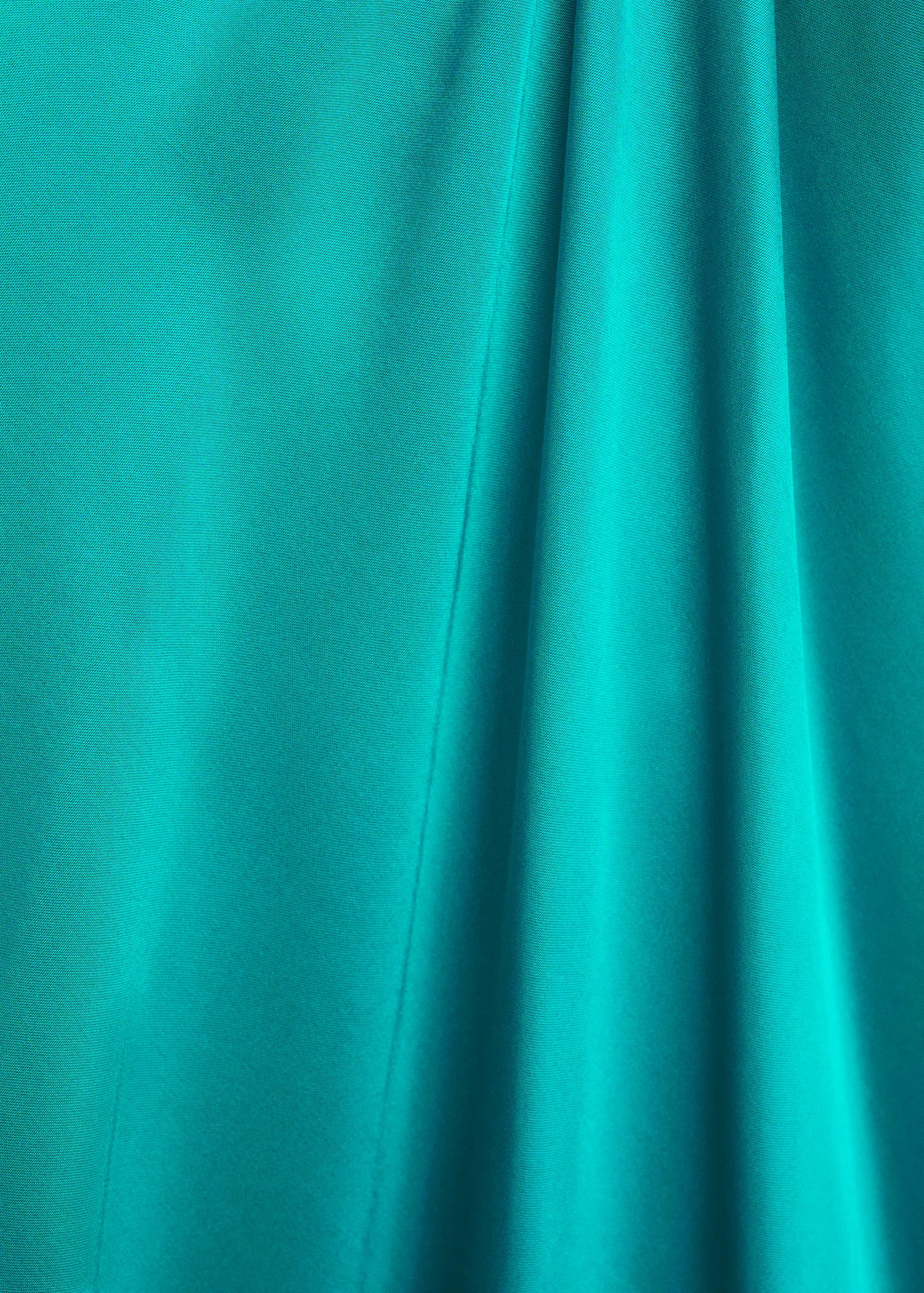 An iconic statement piece designed to capture every gaze. The Turquoise Horizon Dress features a luminous satin finish in a striking turquoise shade, evoking summer nights and coastal elegance. The plunging neckline with a gathered ring detail sculpts the bust with sophistication, while the fluid silhouette drapes effortlessly along the body, elongating the figure with timeless allure. An ode to effortless glamour, this dress is perfect for soirées, seaside dinners, or a modern goddess moment under the stars.